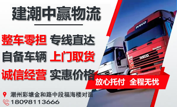 潮州到防城港物流专线是建潮中赢物流主营重点物流线路之一,提供4.2-17.5米整车包车运输,零担专线,可上门取货,量大免费提送货;潮州到防城港货运专线价格实惠,欢迎来电咨询。